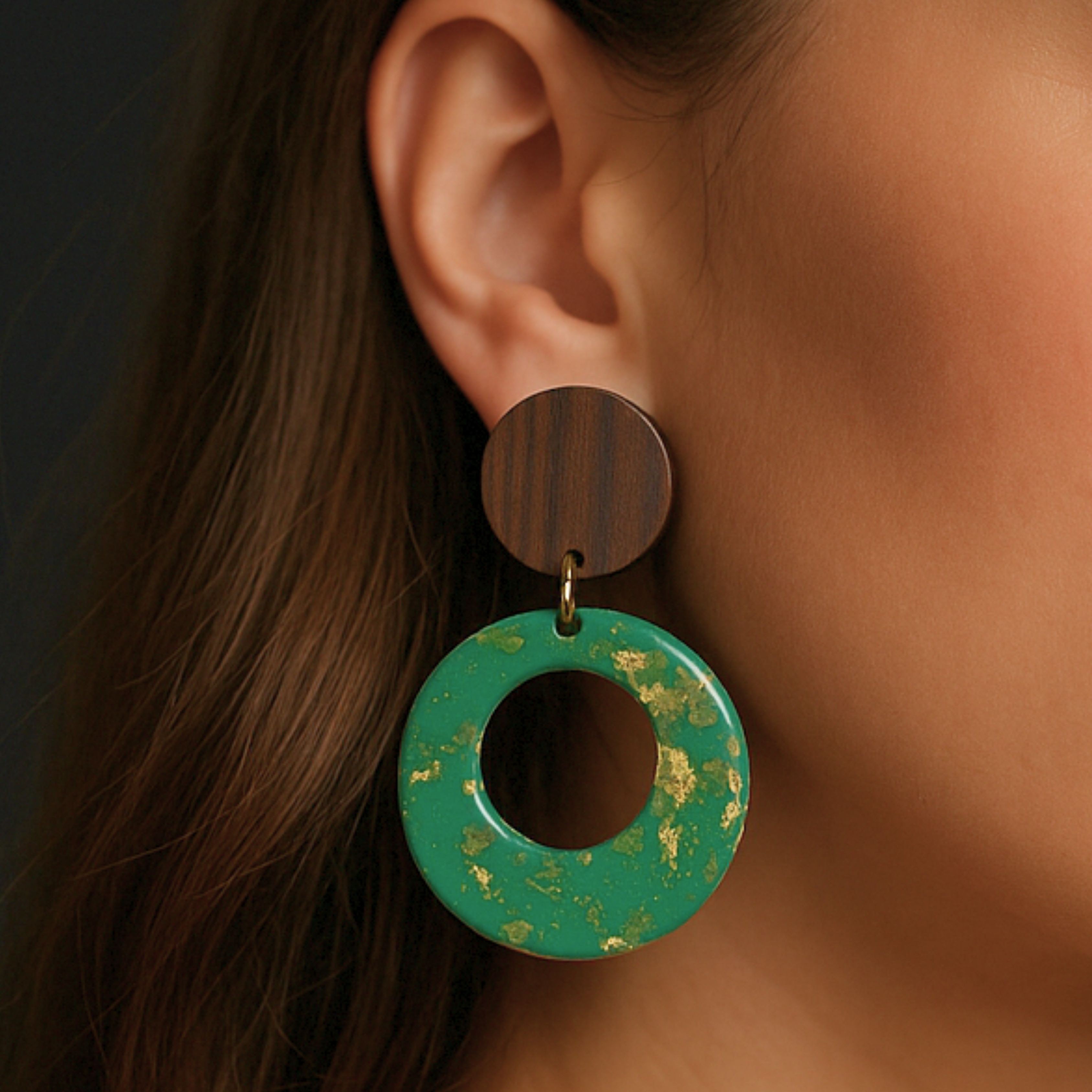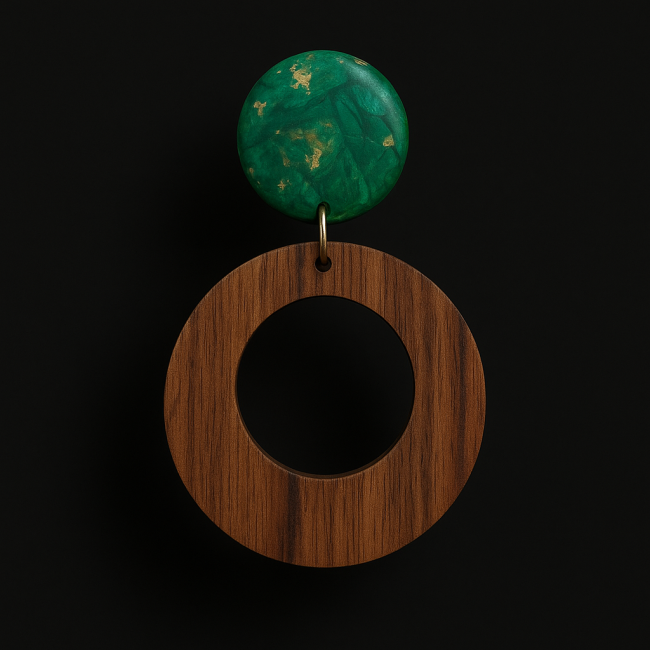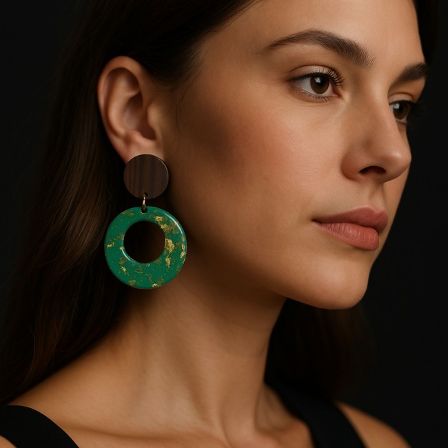 Boucles d'oreilles en noyer et effet marbre vert :