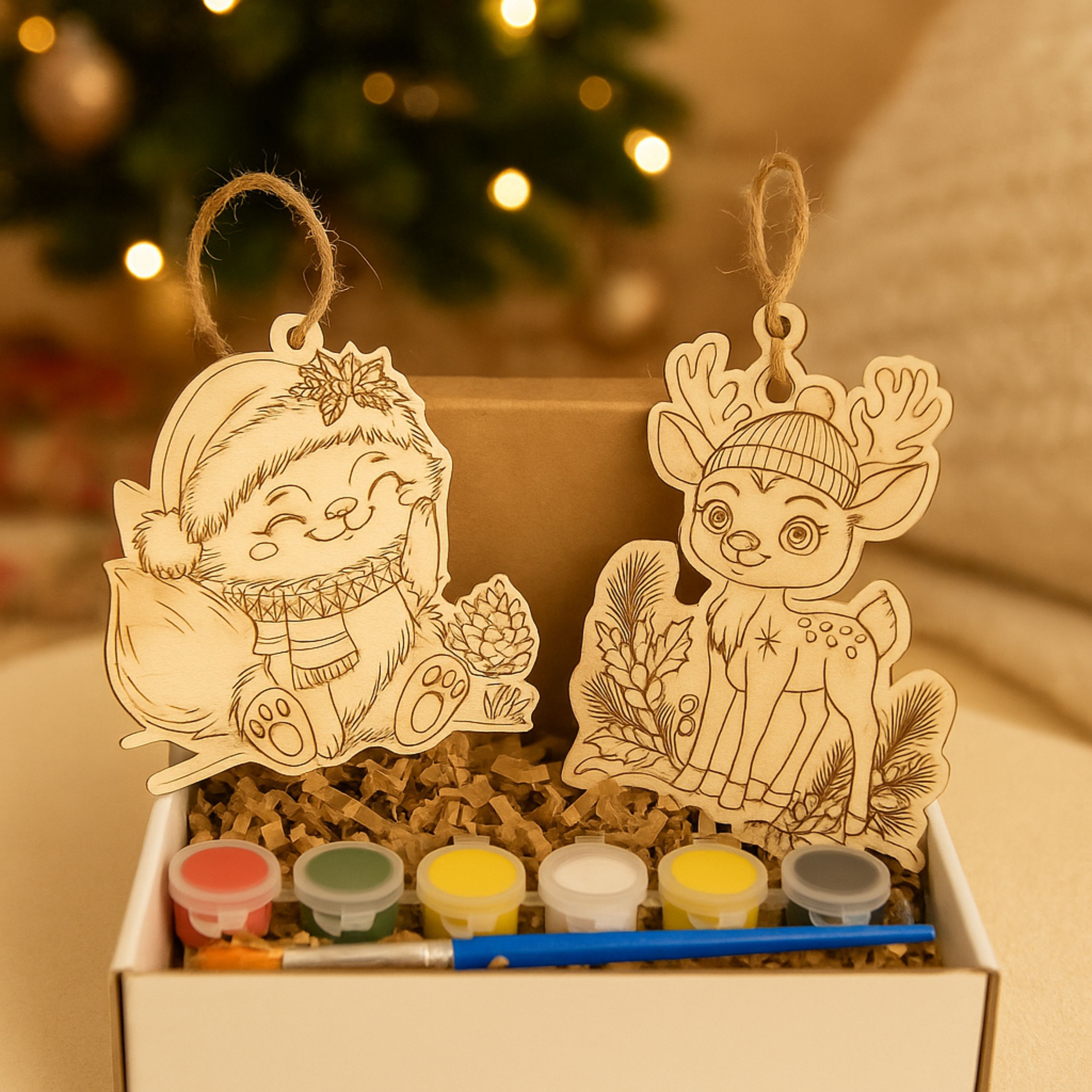 ? Inclus : 2 formes bois (avec ficelle pour suspendre), pinceau & peinture acrylique – de la magie en kit.