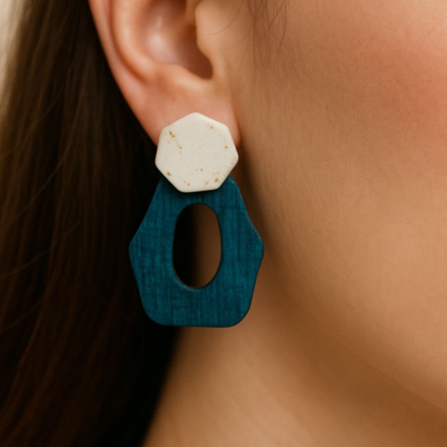 Ces boucles d’oreilles associent la pureté minérale d’un hexagone ivoire à la chaleur authentique du bois de chêne. Leur forme audacieuse et équilibrée fait écho à la nature et à sa puissance tranquille. Gaïa, c’est l’élégance d’un bijou à la fois moderne et intemporel.