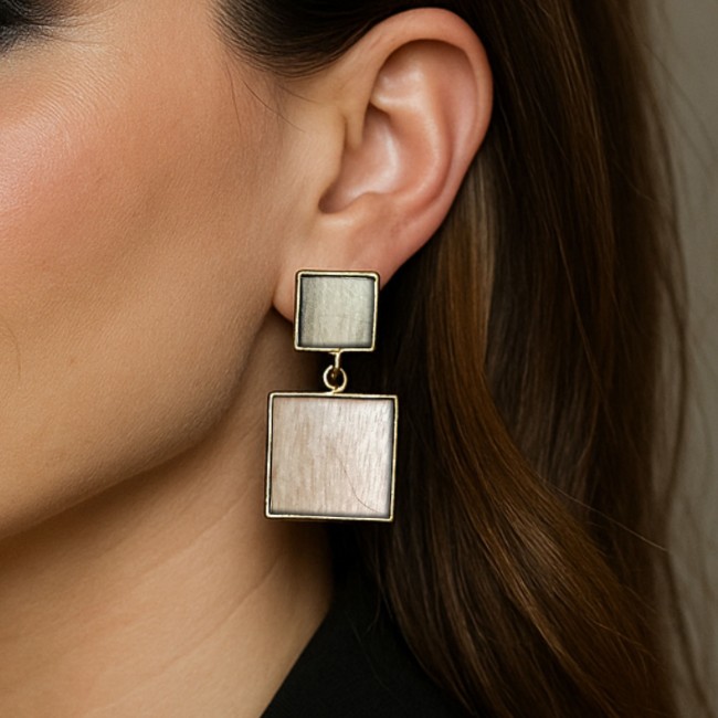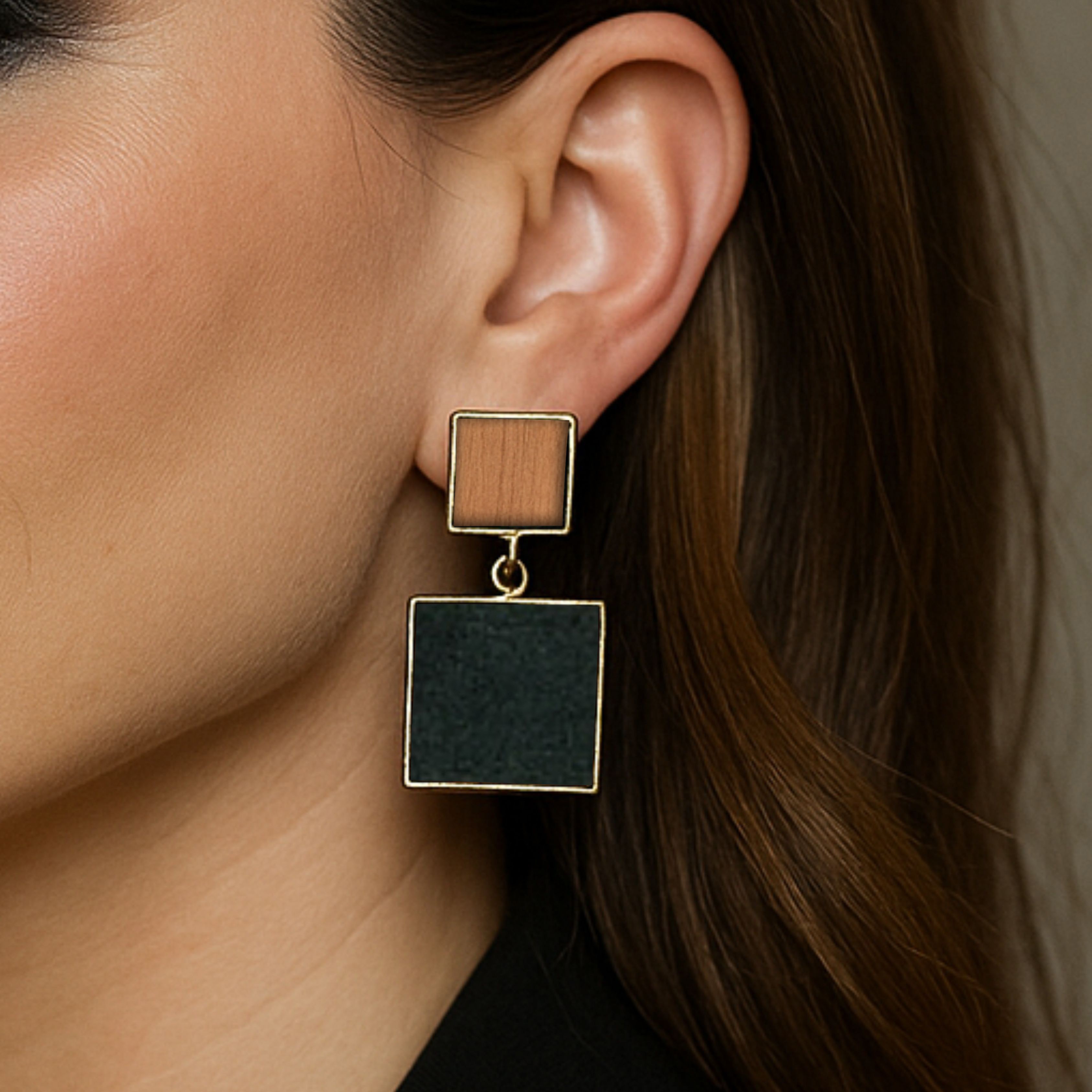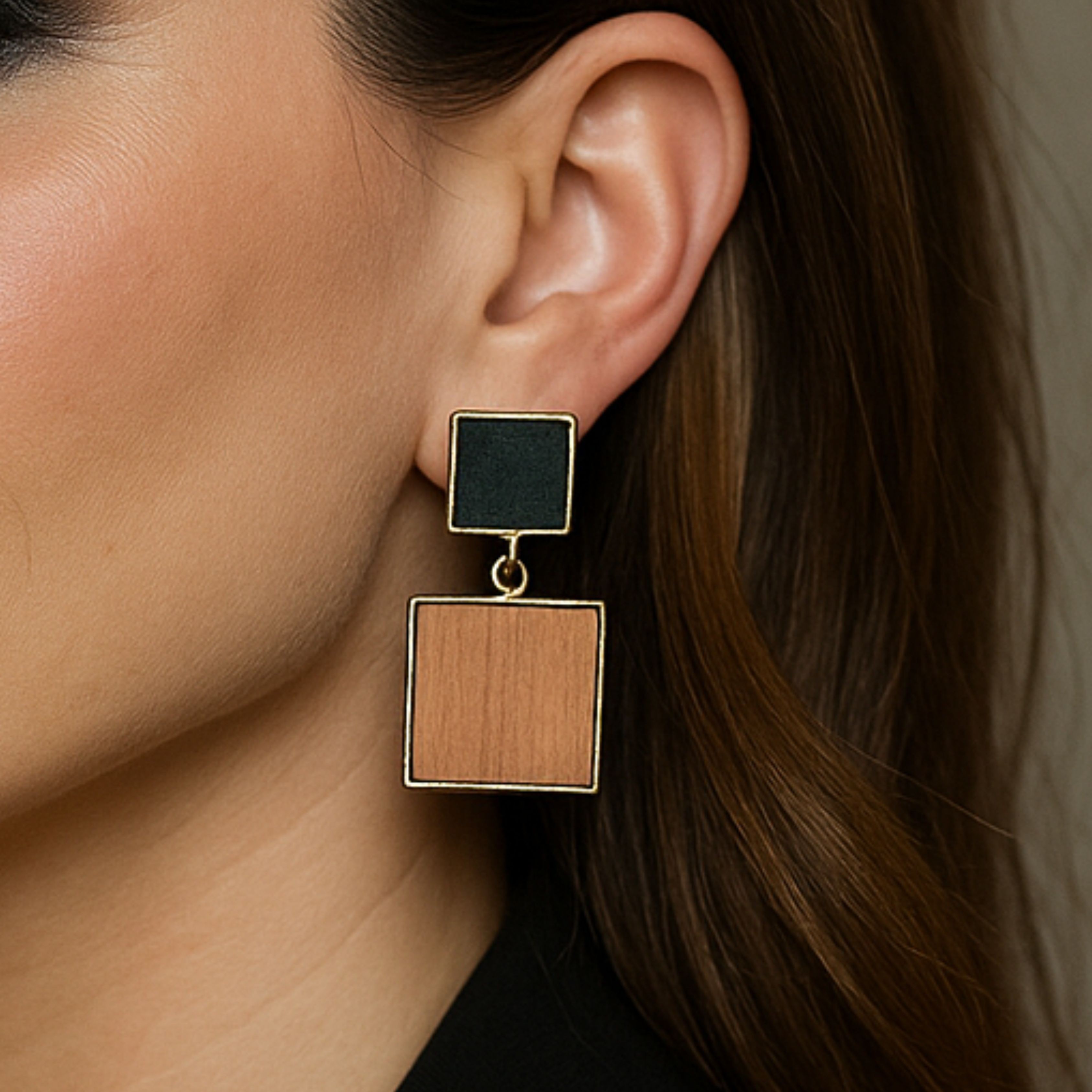 Ces boucles d’oreilles jouent avec la force des lignes droites et l’équilibre des formes. Le bois chaleureux s’unit au noir profond dans un duo encadré d’or, pour un rendu moderne et sophistiqué. Mila, c’est l’assurance d’un style affirmé, à la fois audacieux et raffiné.