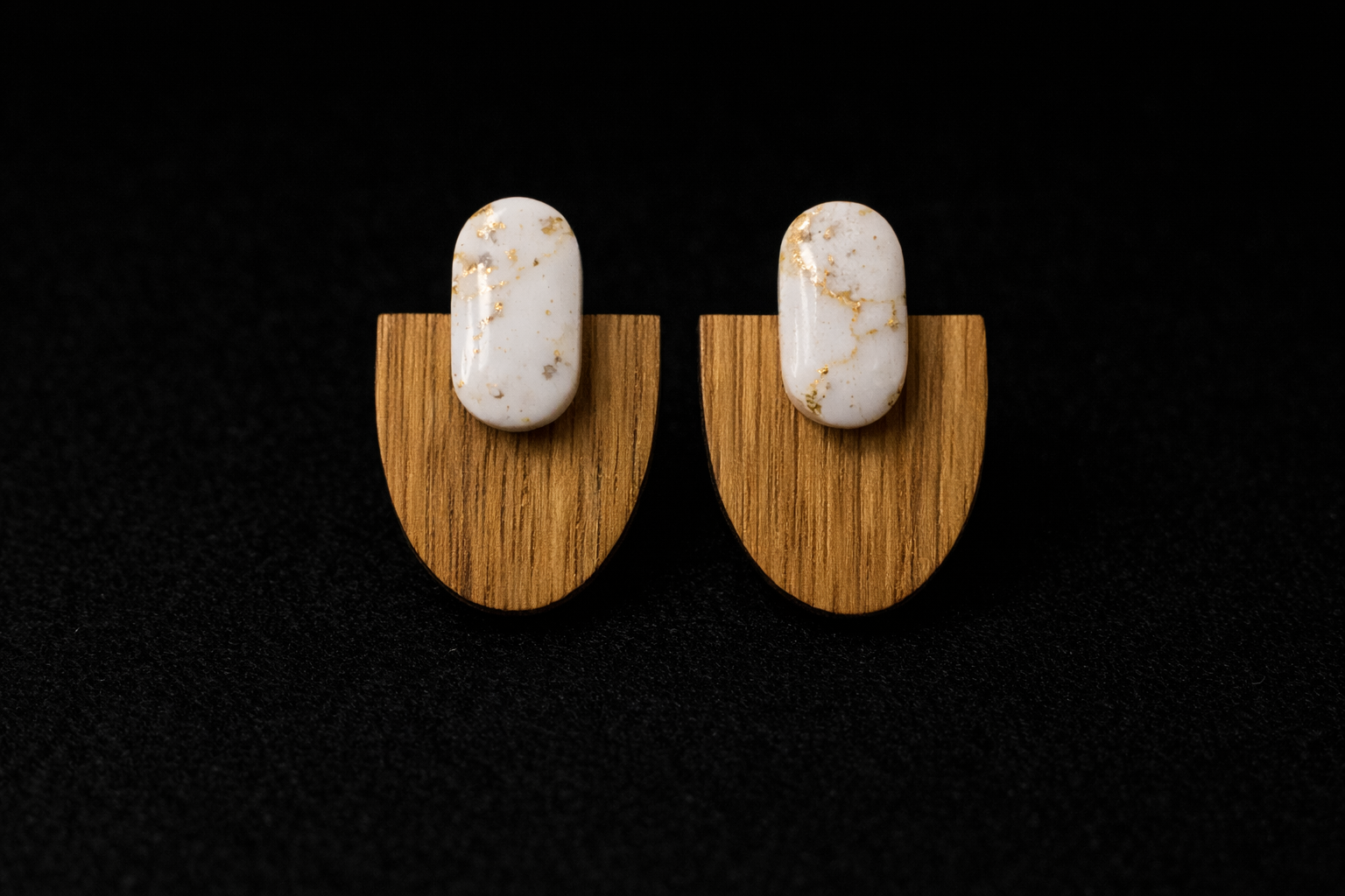 Ces boucles d’oreilles sont une rencontre subtile entre bois naturel et attache effet marbre en pâte polymère allégée. Chaque modèle joue sur les contrastes de matières, de teintes et de textures pour créer un bijou à la fois élégant, léger et profondément artisanal.