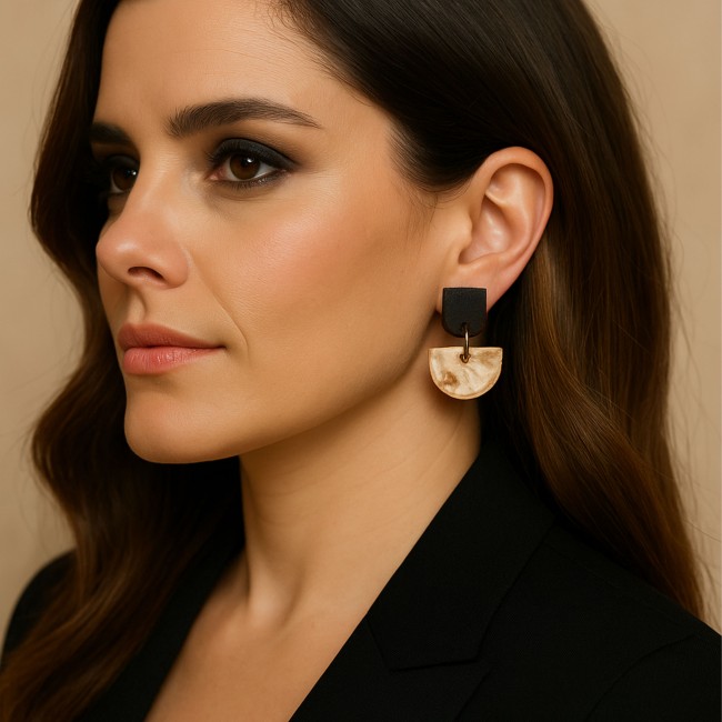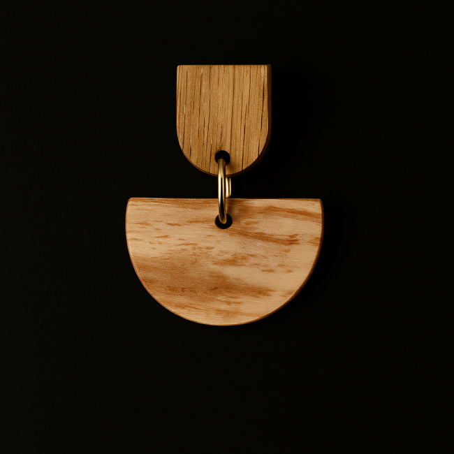 Ces boucles d’oreilles jouent sur l’harmonie des formes : un demi-cercle en bois clair aux veines uniques suspendu à un module graphique. Les nuances naturelles du bois leur donnent un caractère singulier à chaque paire. Savia, c’est le bijou parfait pour sublimer un look moderne avec une touche d’authenticité.