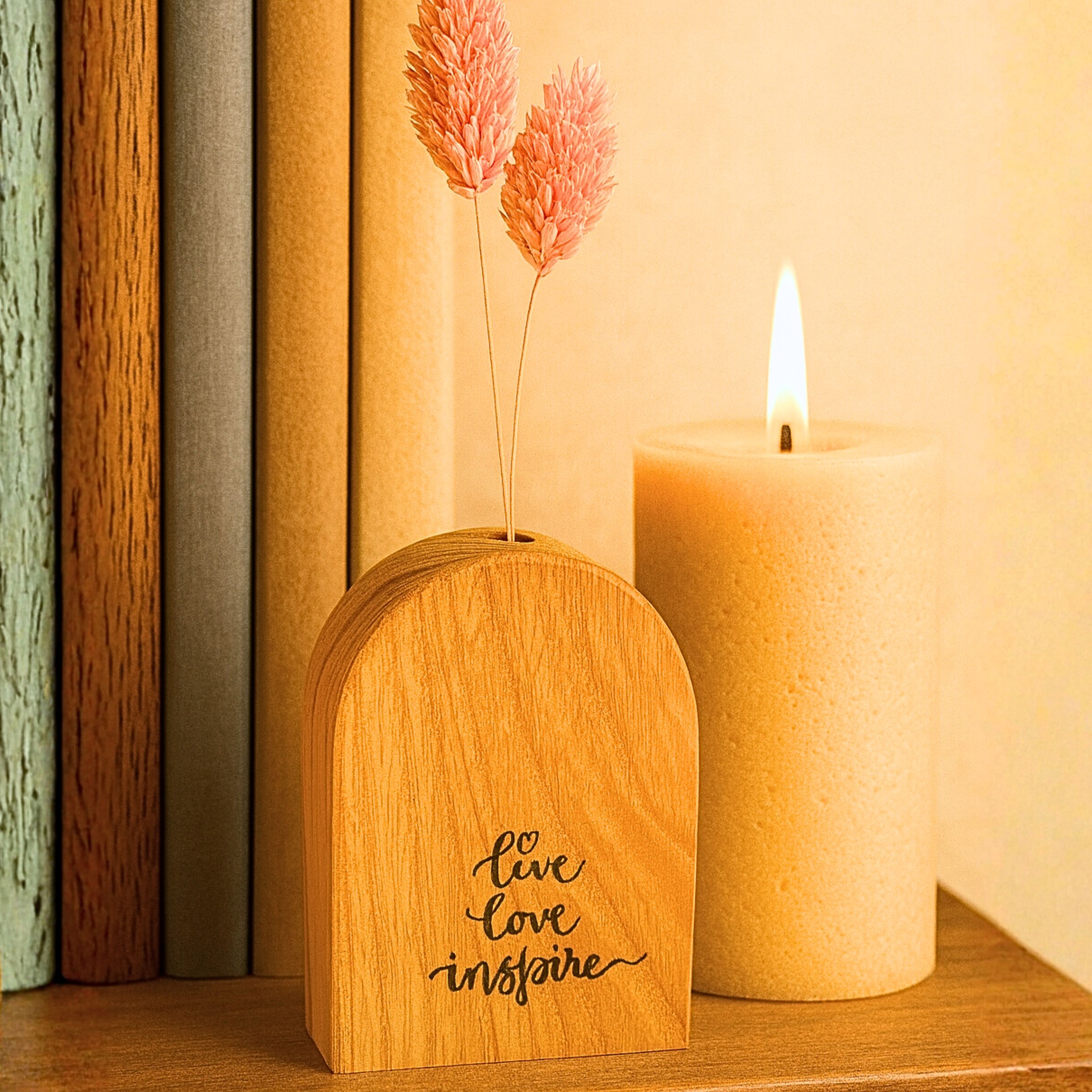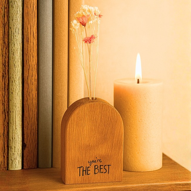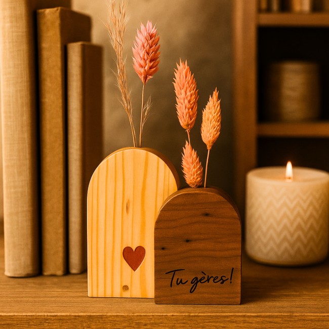 Offrez une attention pleine de douceur avec ces soliflores en bois massif gravés à la main.