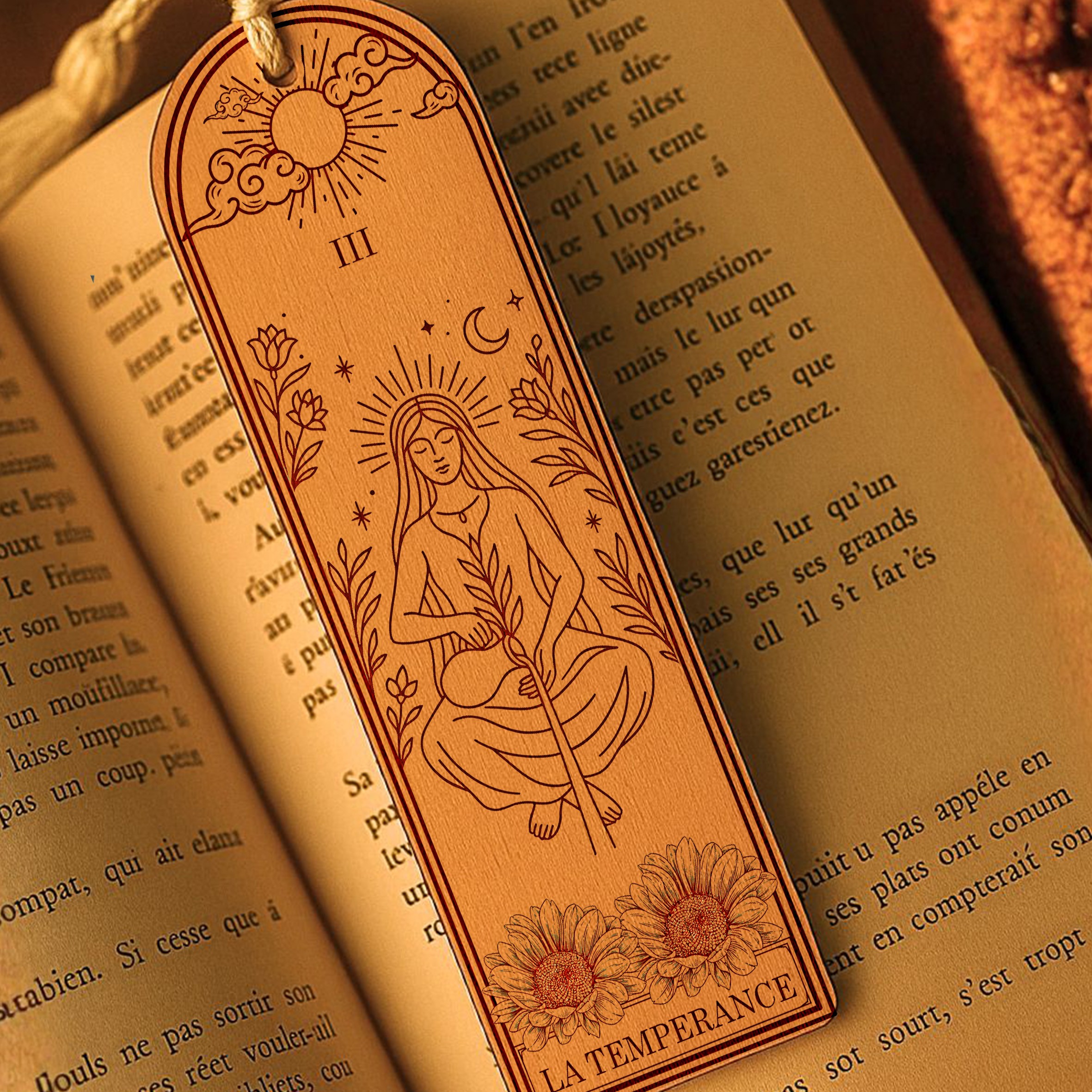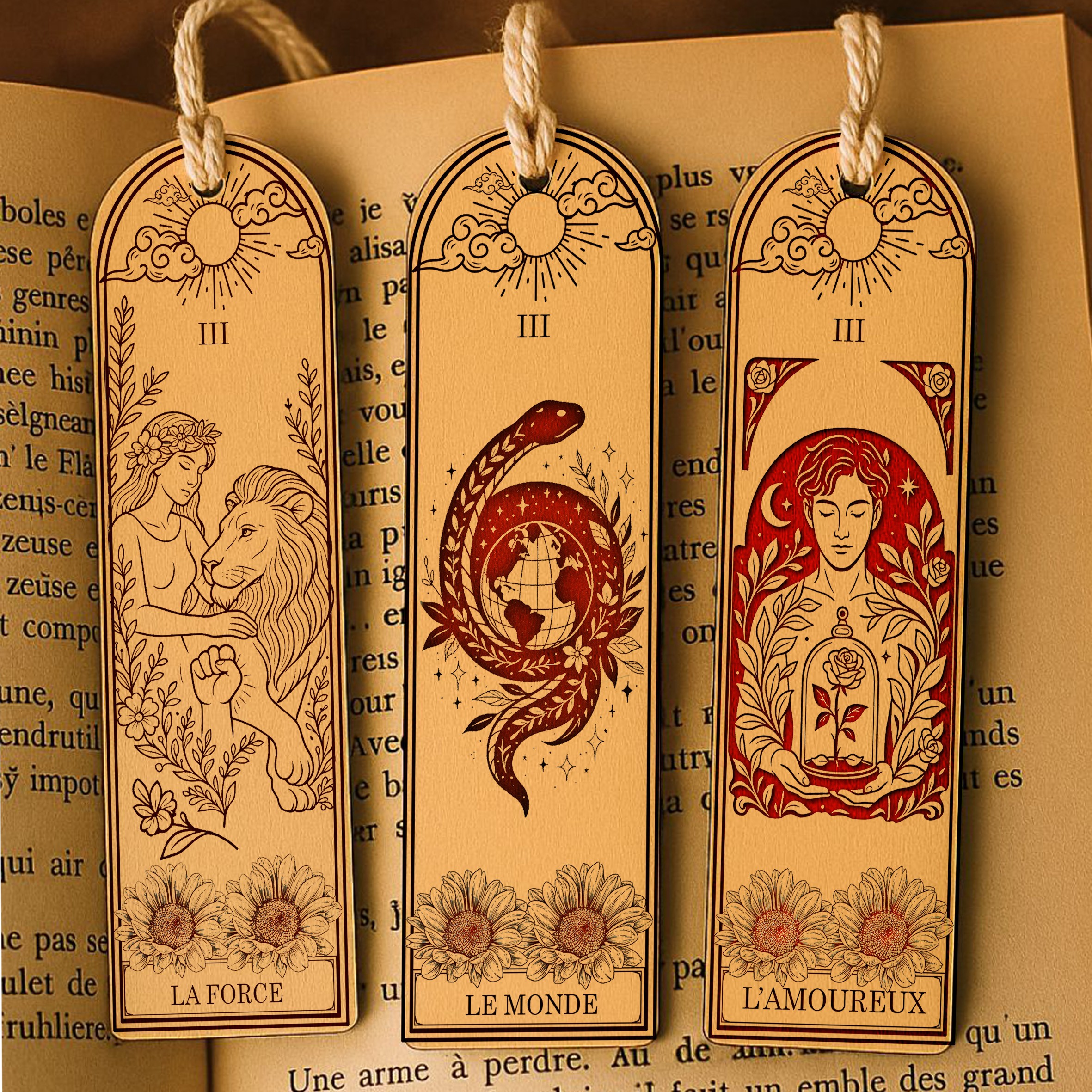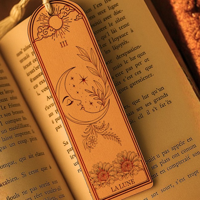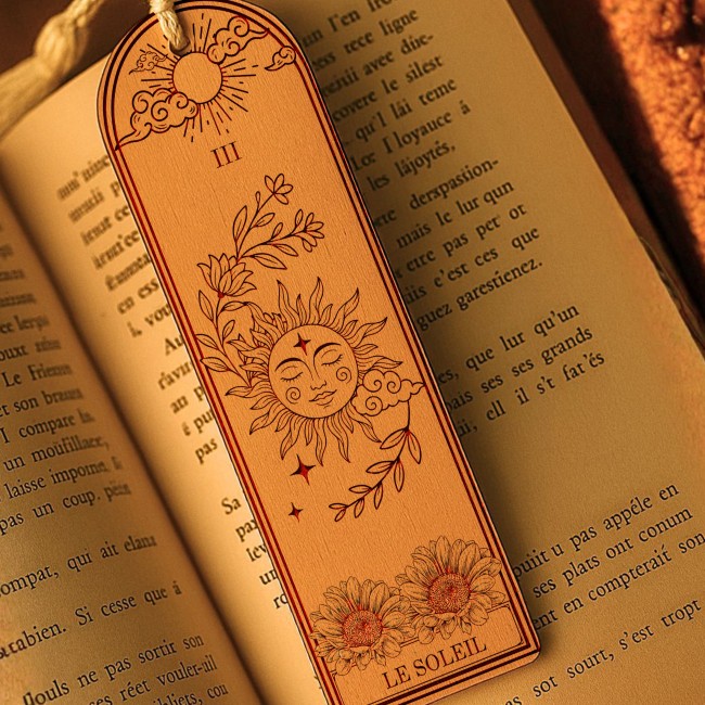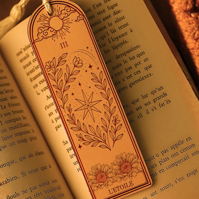 Laissez la magie du tarot accompagner vos lectures avec la collection “Tarot & Lumière”, une série de marques-pages artisanaux en bois, inspirés des arcanes majeurs et des grands symboles spirituels.