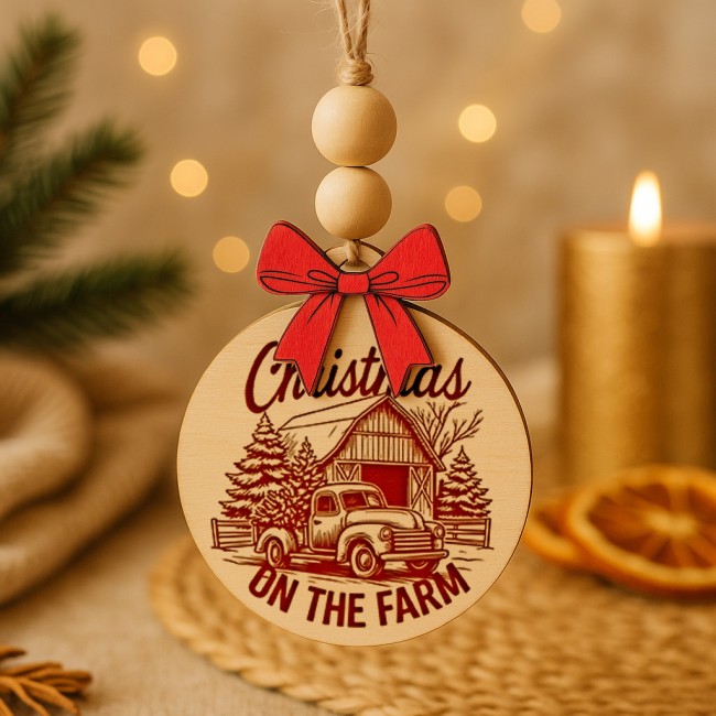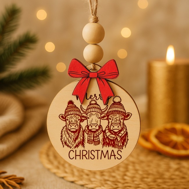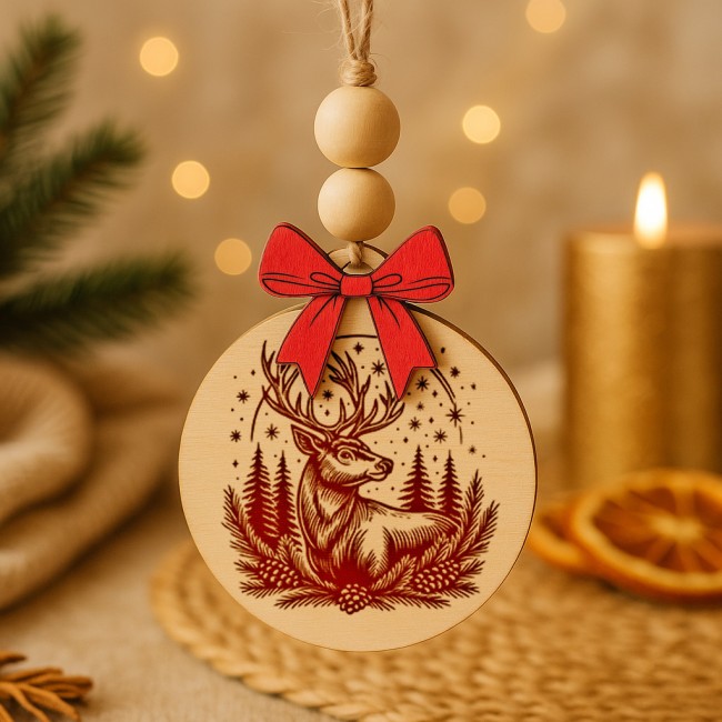 Laissez entrer la magie de Noël dans votre maison avec notre collection Féerie d’Hiver : six boules de Noël en peuplier massif, délicatement gravées au laser et ornées d’un nœud rouge en bois ainsi que de perles naturelles en bois brut.