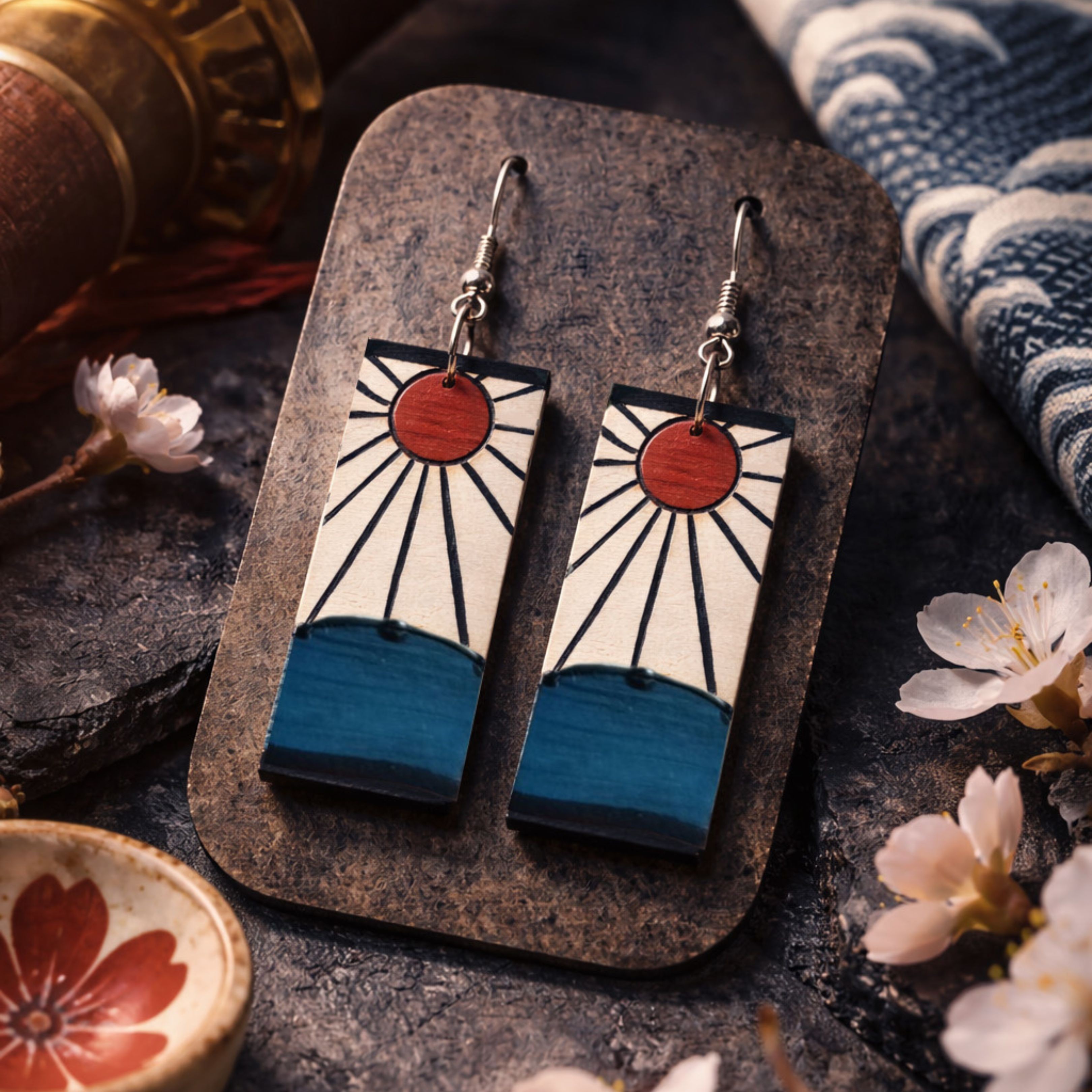 Inspirées de l’univers de Demon Slayer: Kimetsu no Yaiba, ces boucles d’oreilles rendent hommage à Tanjiro à travers une interprétation artisanale en marqueterie de bois.