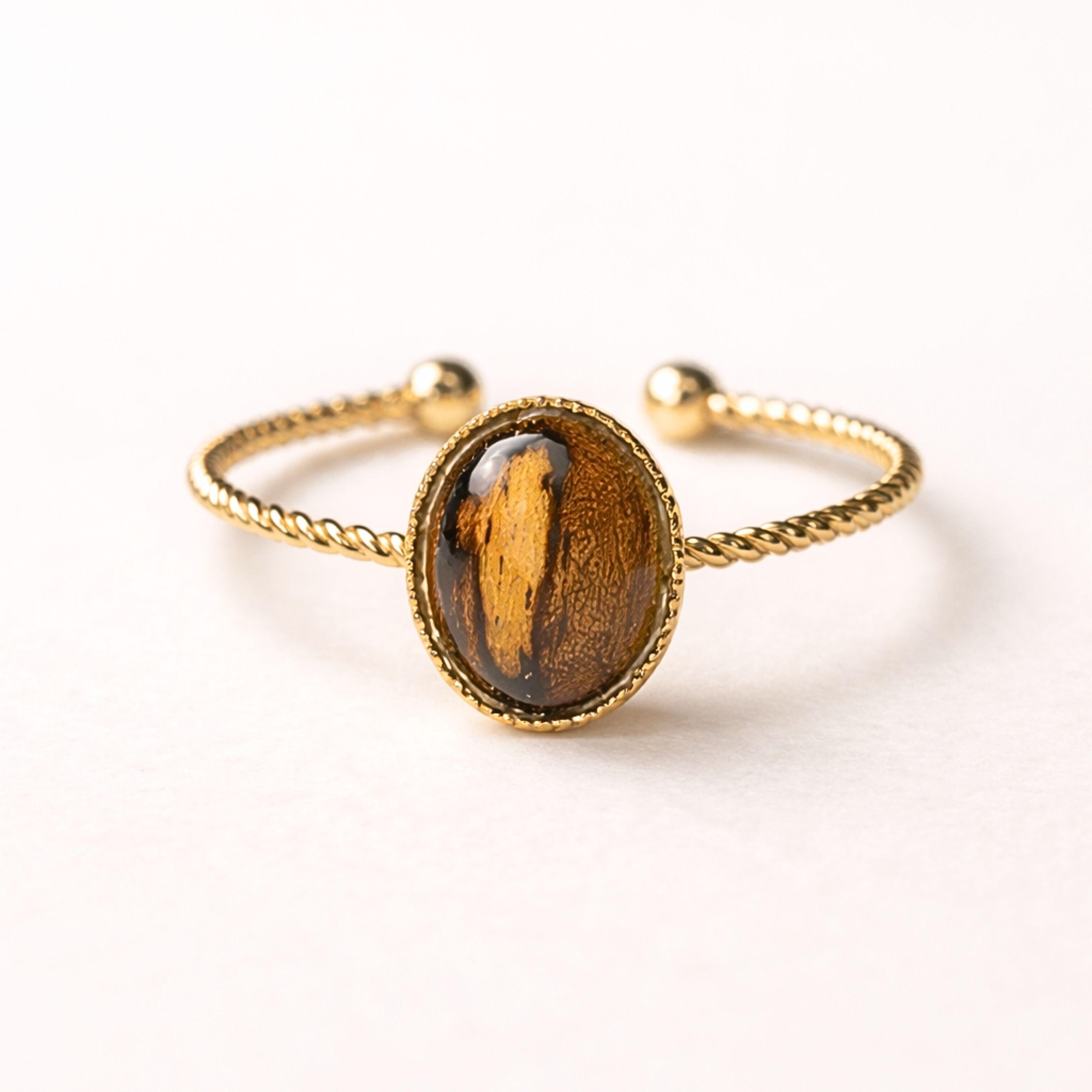 L’anneau torsadé vient renforcer cette symbolique d’enracinement intérieur, de force tranquille construite dans le temps.