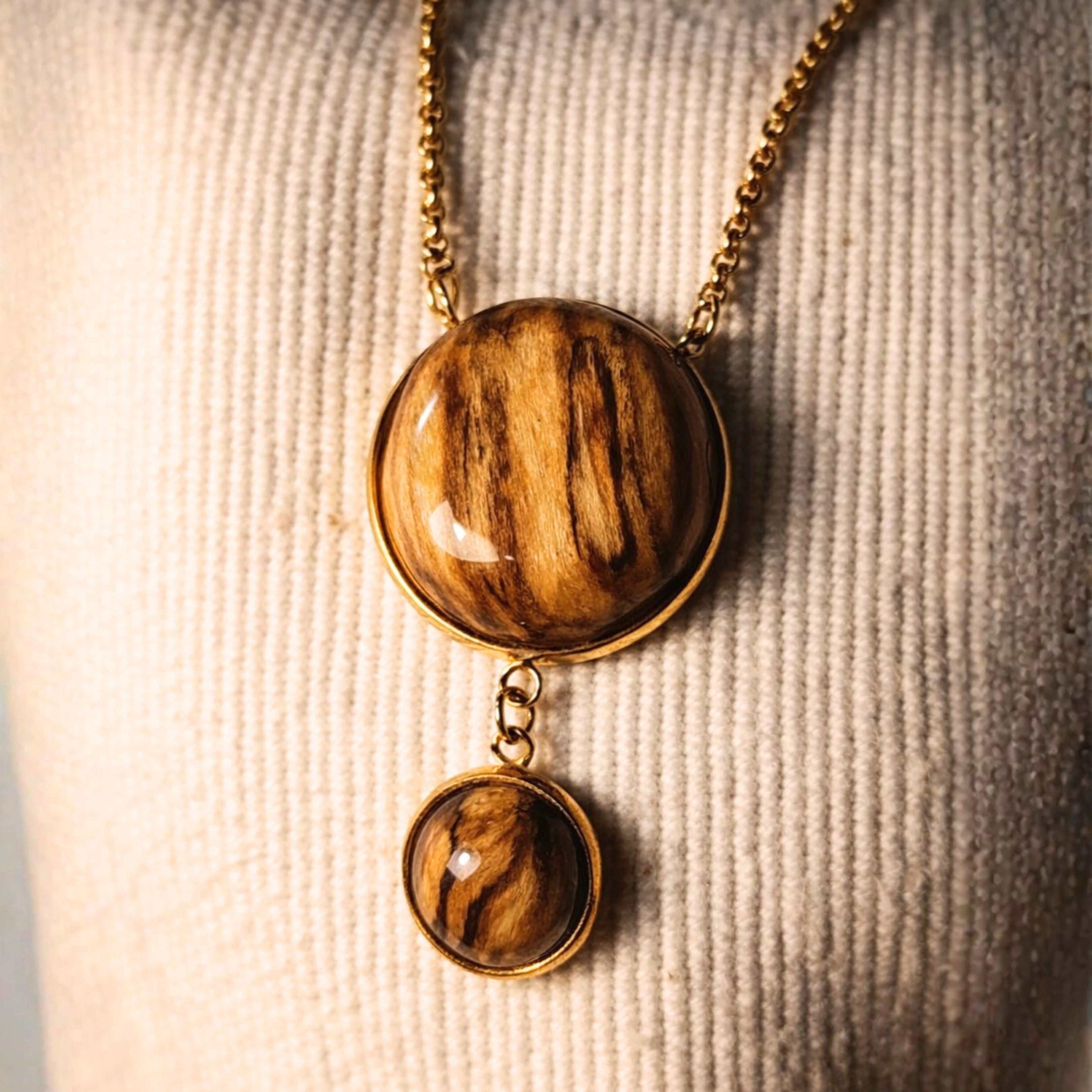 Le collier Tatouine – Bouleau Échauffé capture la beauté de l’imperfection naturelle.